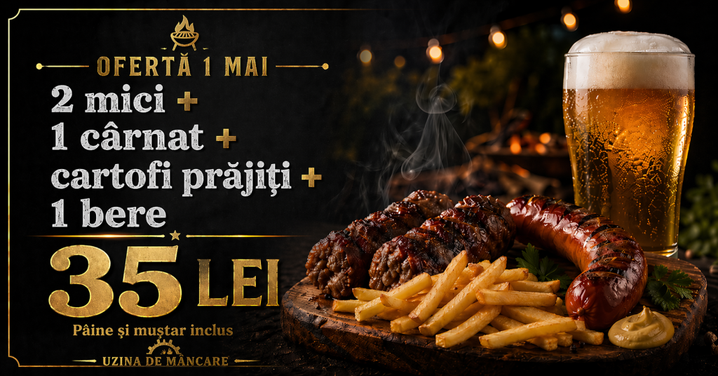 De 1 Mai, te așteptăm la Uzina de Mâncare să sărbătorim cum se cuvine, cu gust autentic, preparate făcute pe grătar și atmosferă de sărbătoare.